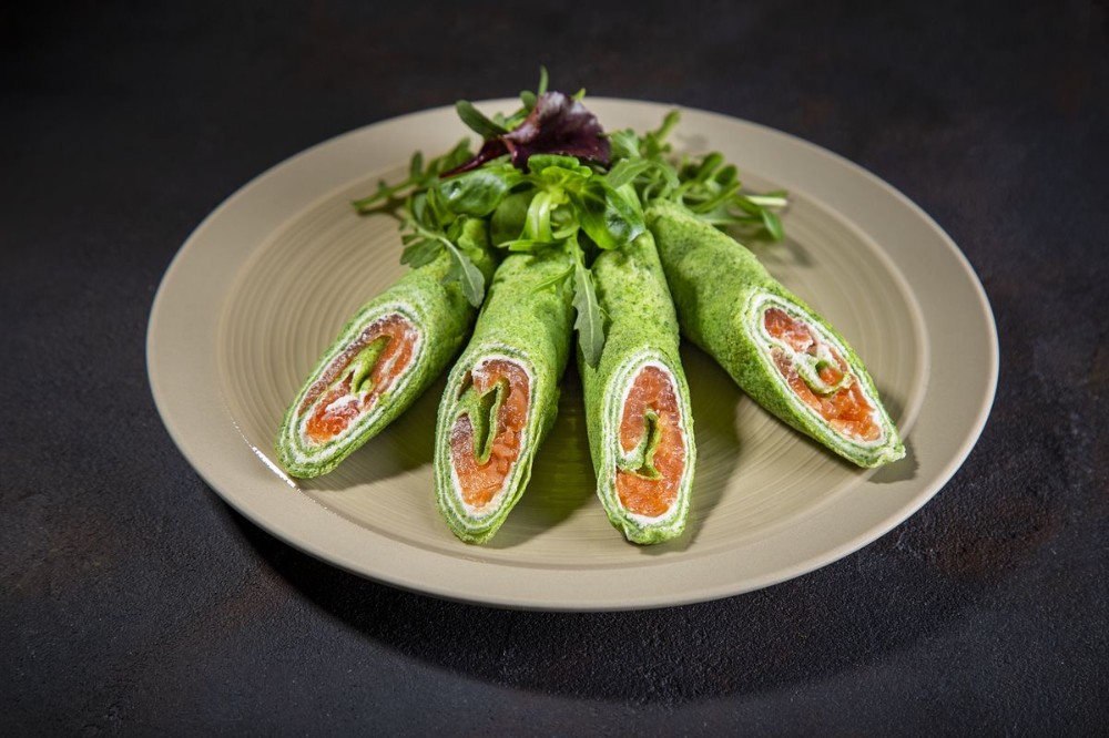 Шпинатні млинці з лососем