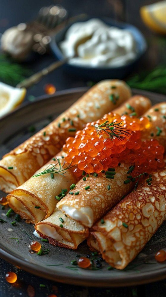 Млинці з ікрою та вершковим сиром